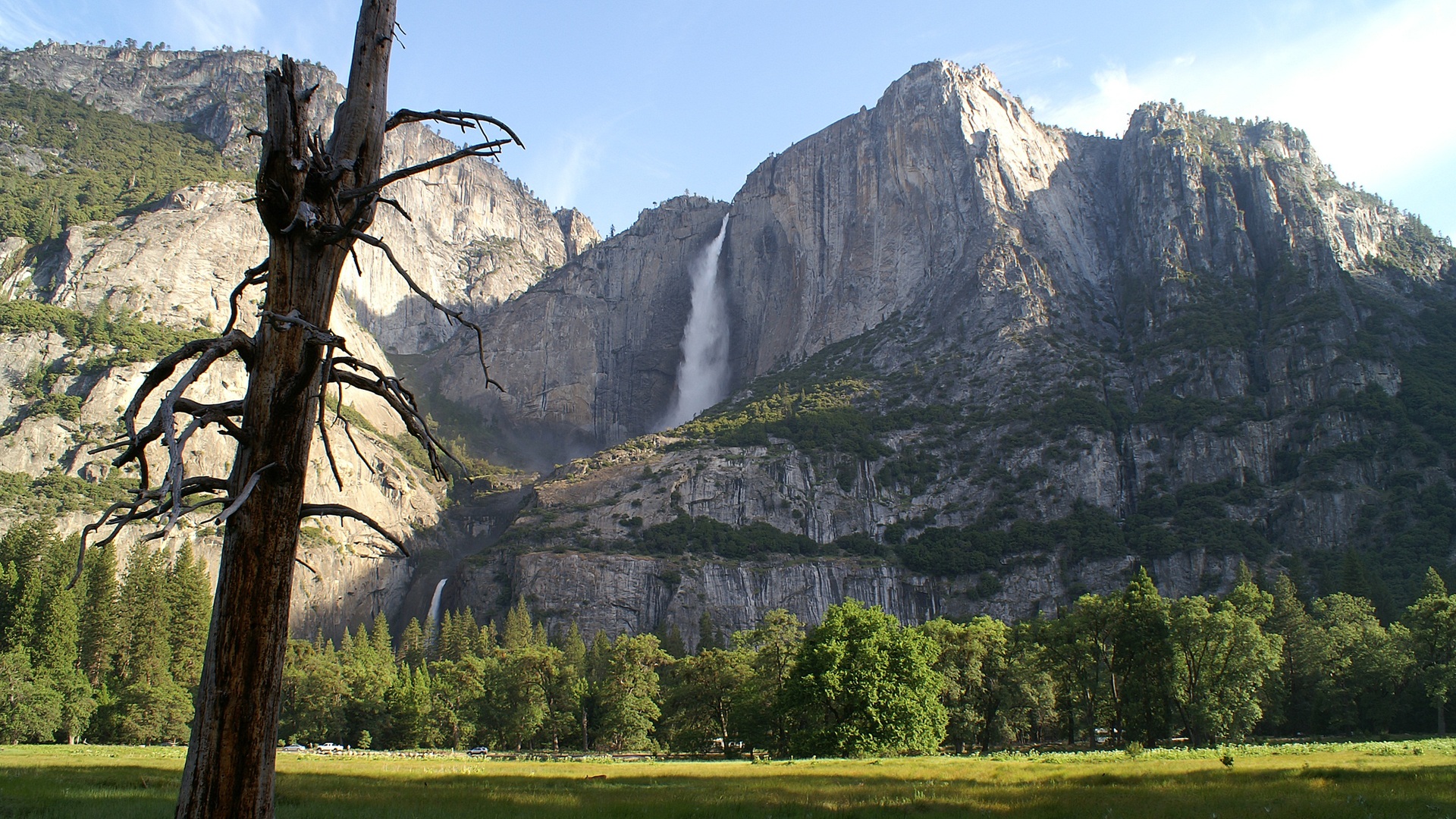 Скачать обои для рабочего стола Водопад со скалы в солнечную погоду и фото
