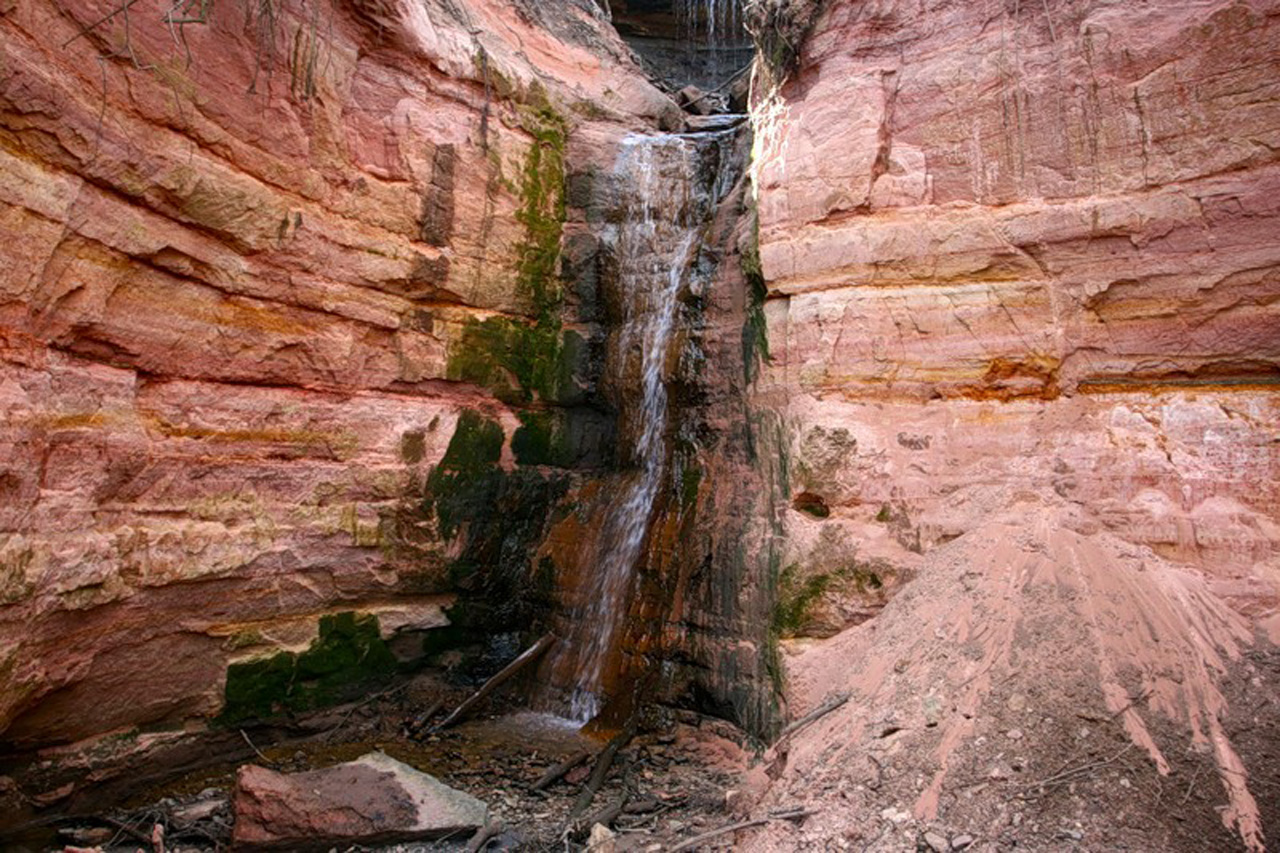 Похожие обои на Водопад среди красных камней: