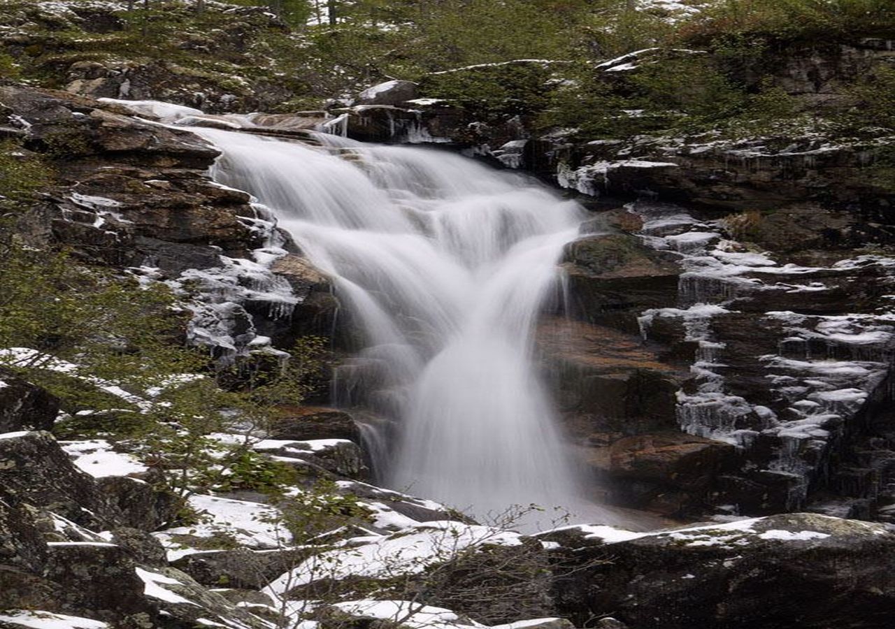 Скачать обои для рабочего стола Водопад струится по камням и фото