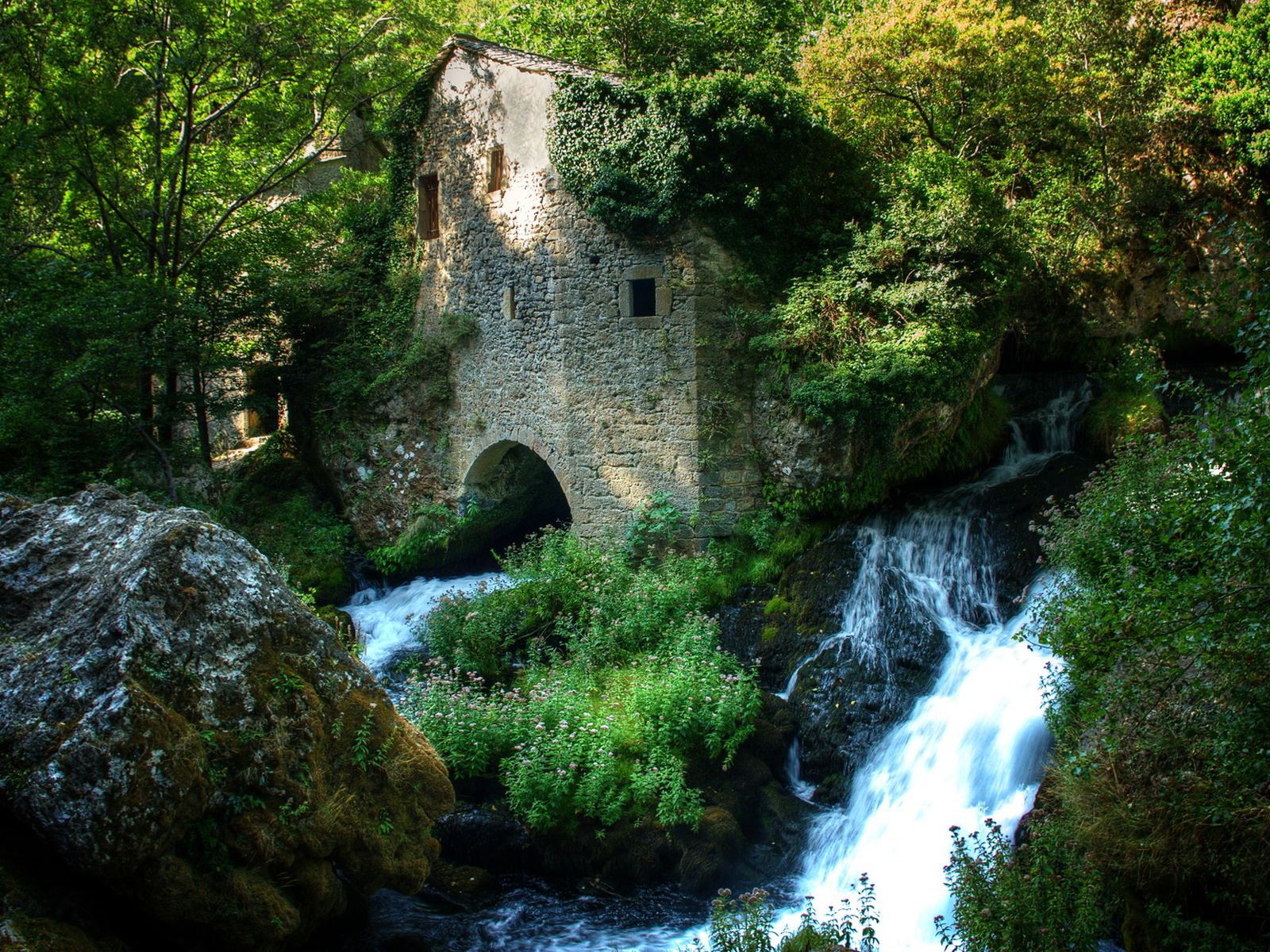Скачать обои для рабочего стола Водопад у старой крепости и фото