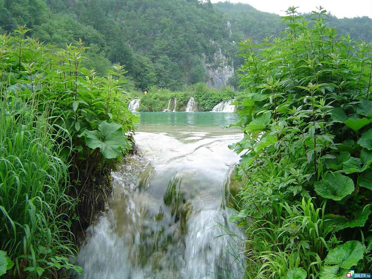 Скачать обои для рабочего стола Водопад в зелени и фото