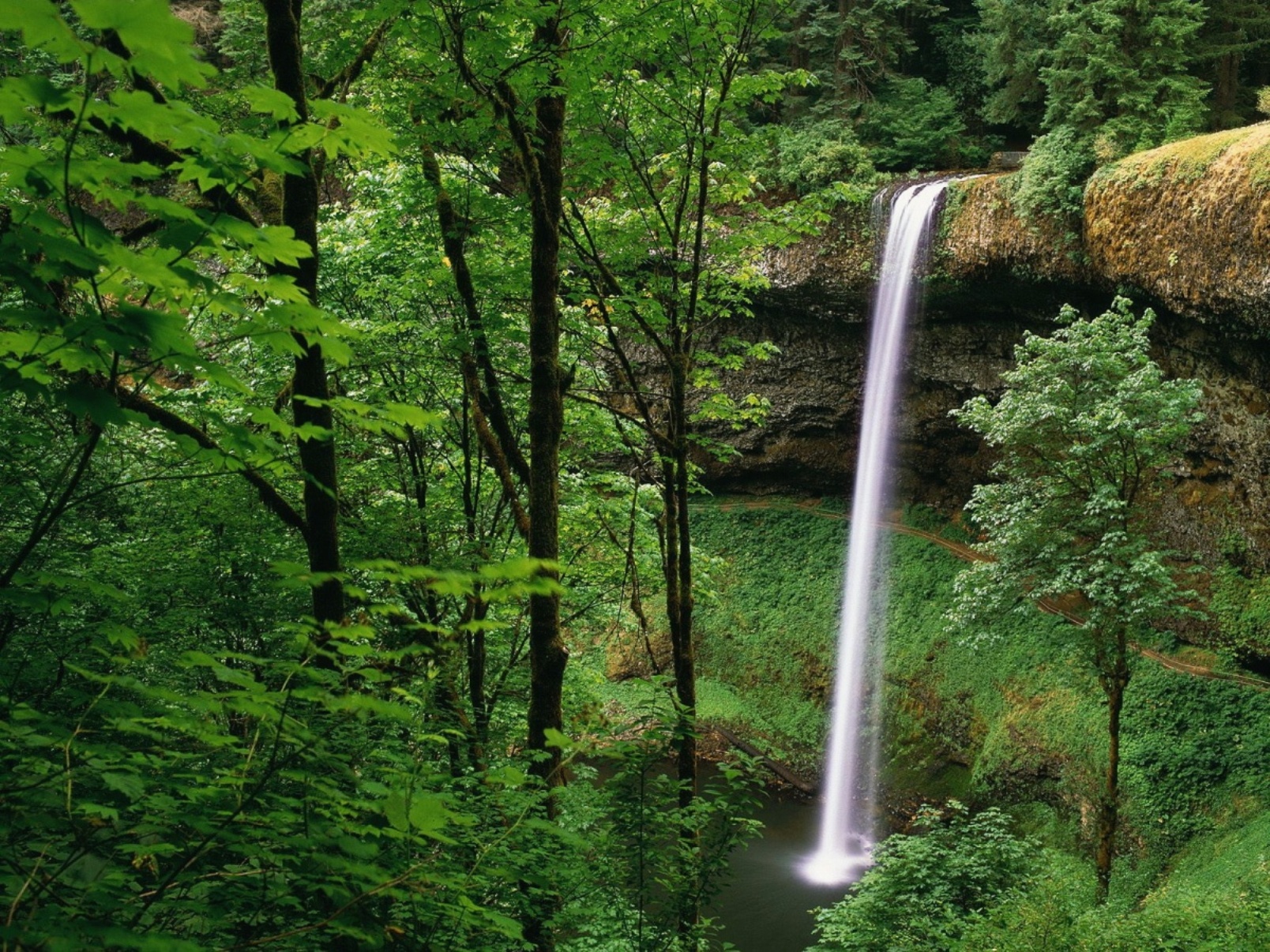 Скачать обои для рабочего стола Водопад высокий в лесу и фото