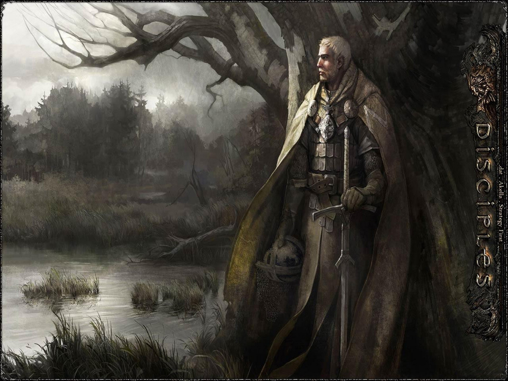 Скачать обои для рабочего стола Воин с мечом у дерева и фото