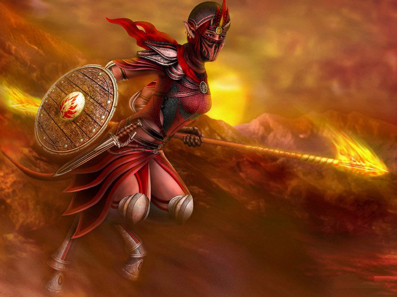 Скачать обои для рабочего стола Воин с пламенным наконечником и фото