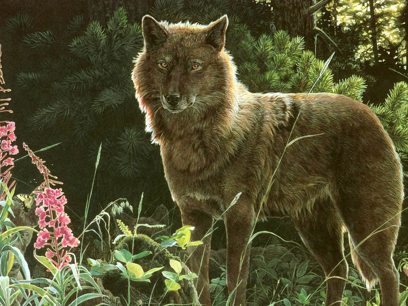 НАВИГАЦИЯ: ОБОИ ДЛЯ РАБОЧЕГО СТОЛА >> ОБОИ Рисованные >> Обои Волк в лесу