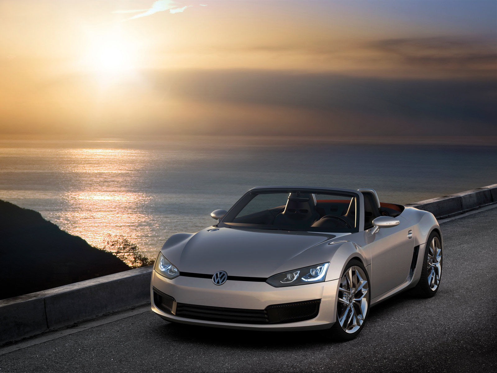 Скачать обои для рабочего стола Volkswagen - BlueSport Concept на фоне заката и фото