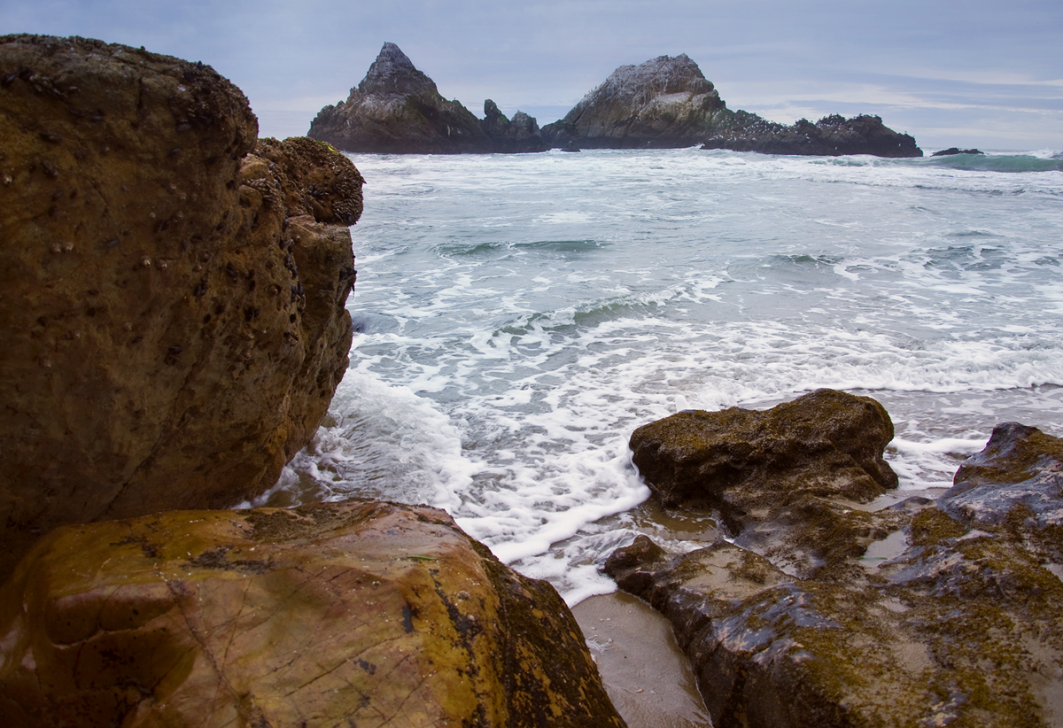 Скачать обои для рабочего стола Волны и камни и фото
