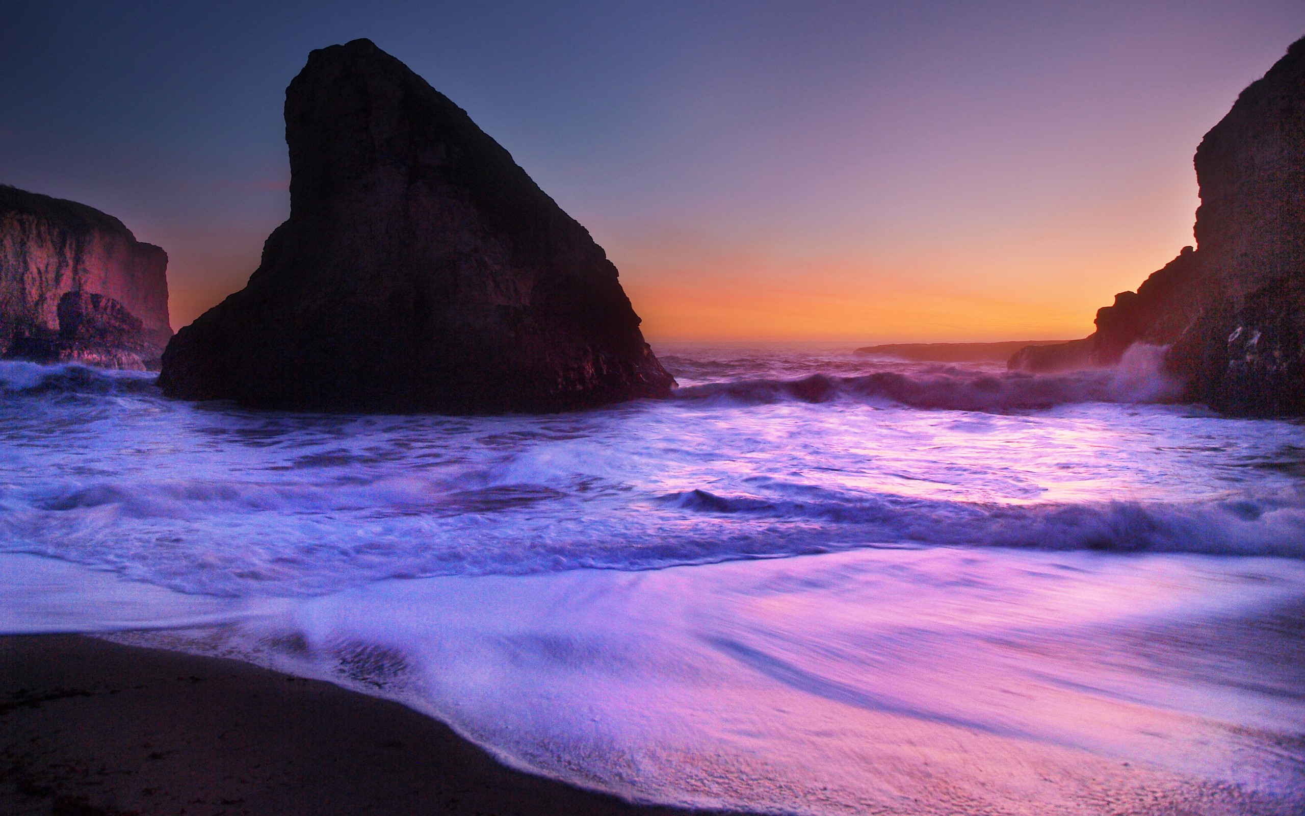 Скачать обои для рабочего стола Волны у берега и скалы и фото