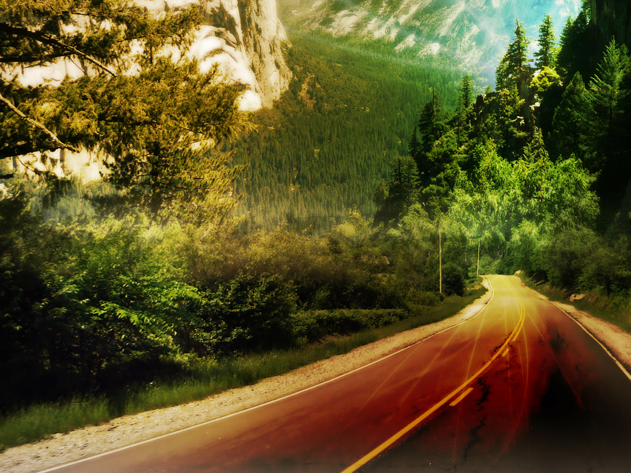 Скачать обои для рабочего стола Волшебная дорога в горы и фото
