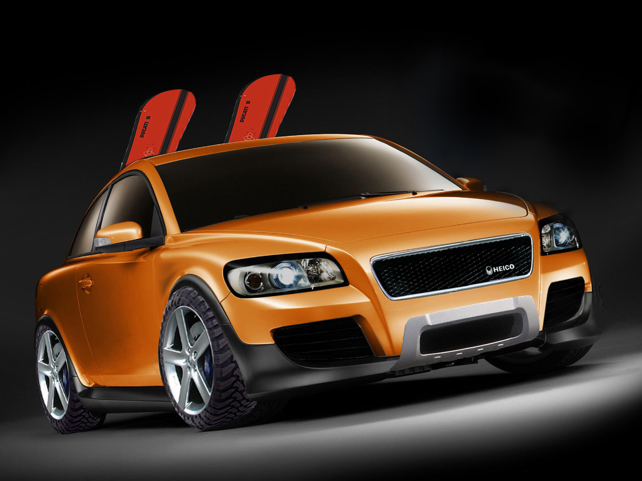 Скачать обои для рабочего стола Volvo C30 машина сноубордера и фото