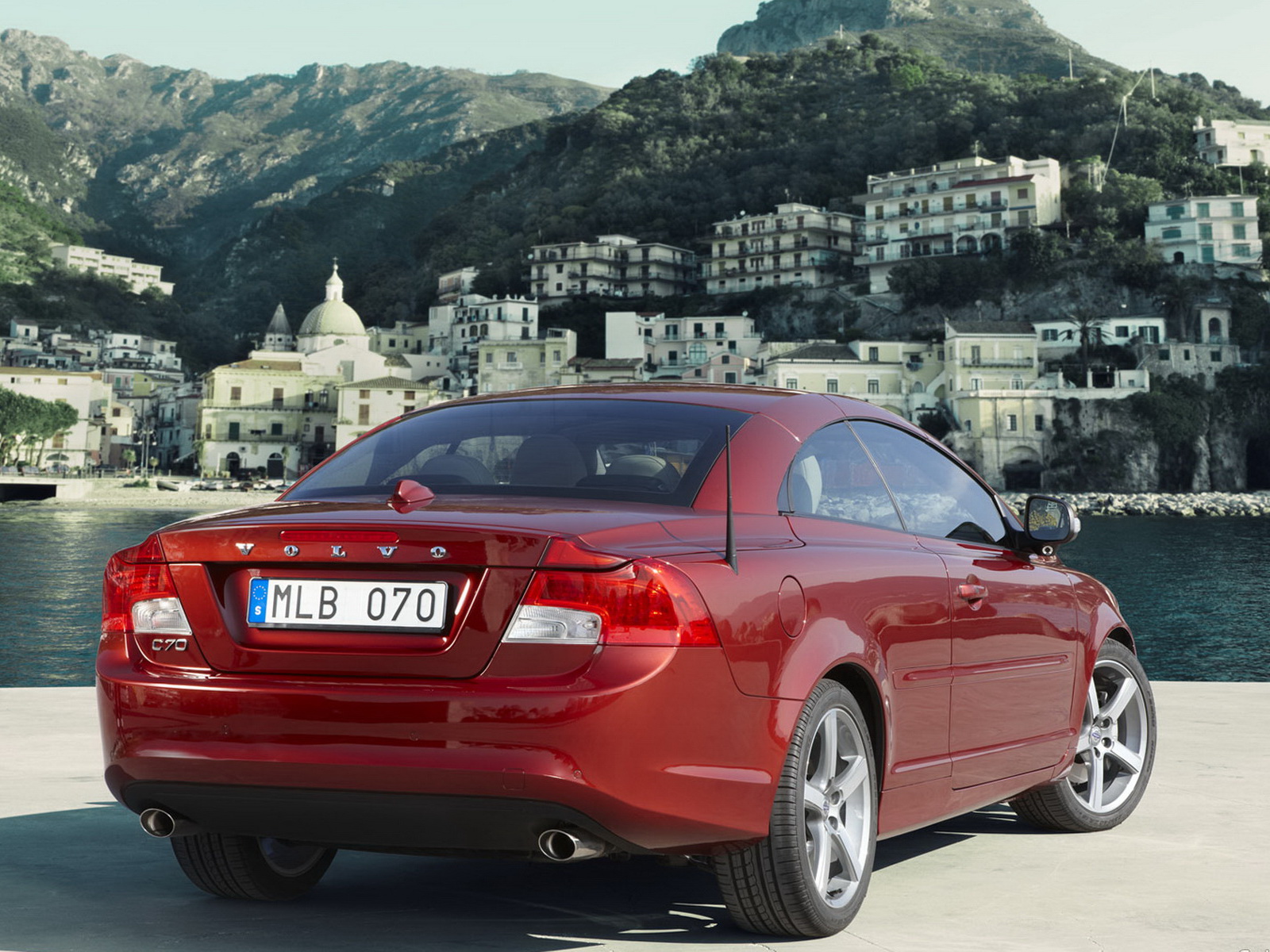 Скачать обои для рабочего стола Volvo C70 вид авто сзади со стороны объектива и фото