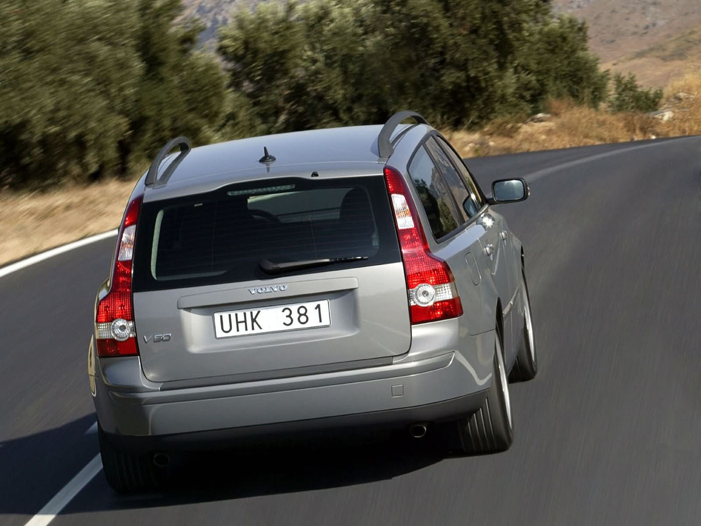 Обои Volvo V50 на дороге вид сзади