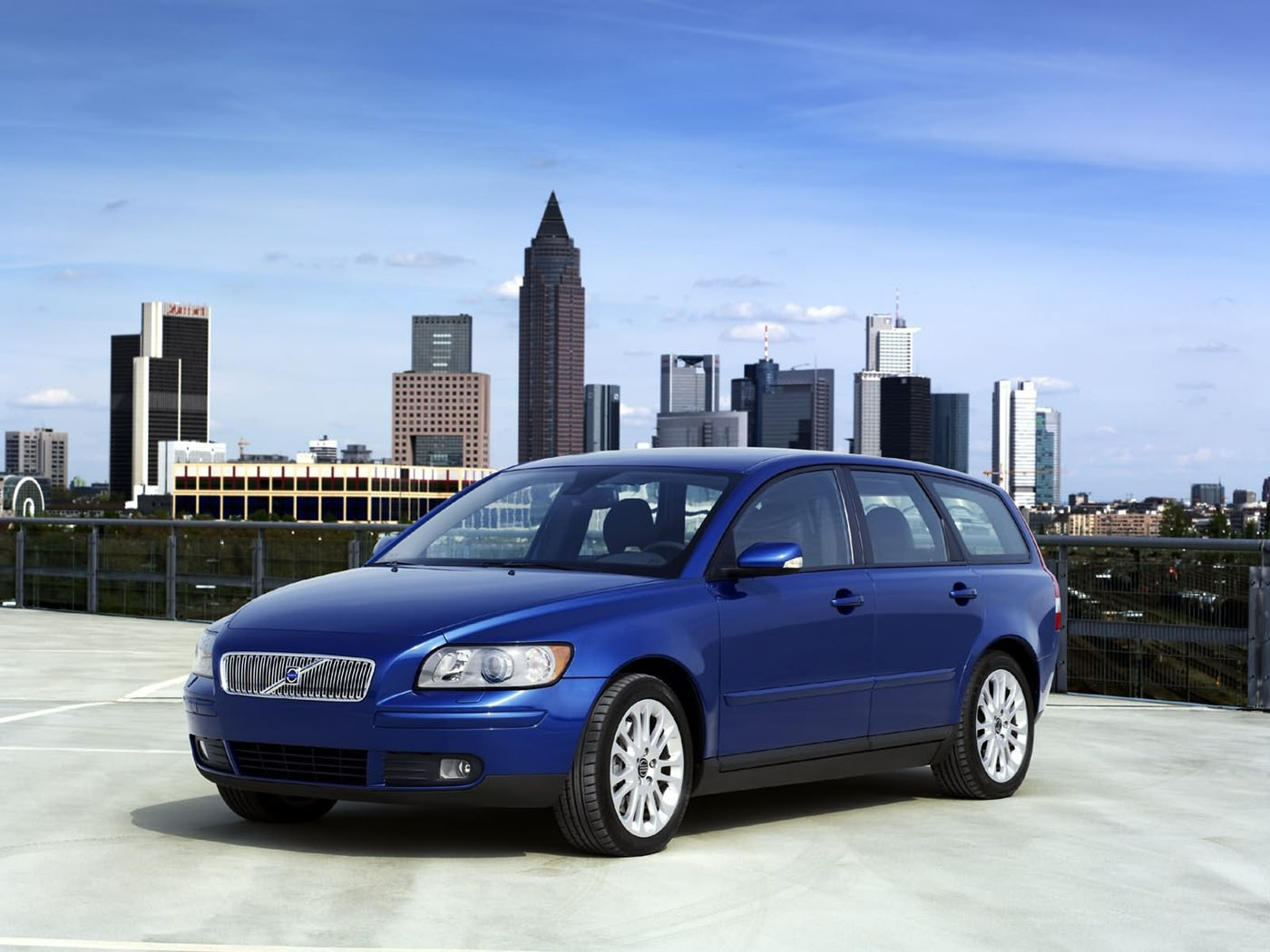 Скачать обои для рабочего стола Volvo V50 на фоне города и фото