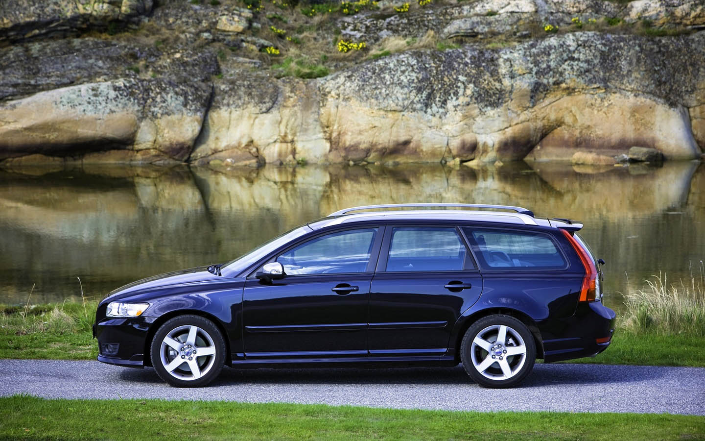 Скачать обои для рабочего стола Volvo V50 на природе вид сбоку и фото