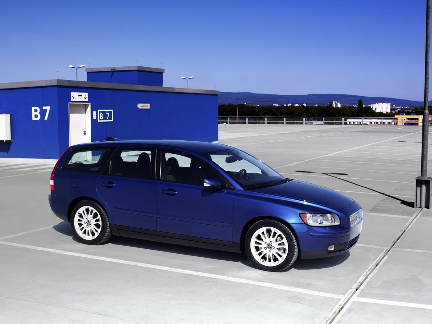Скачать обои для рабочего стола Volvo V50 синего цвета вид сбоку и фото