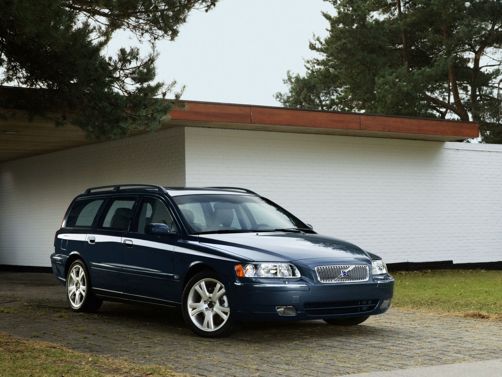 Обои Volvo V70 возле дома вид спереди