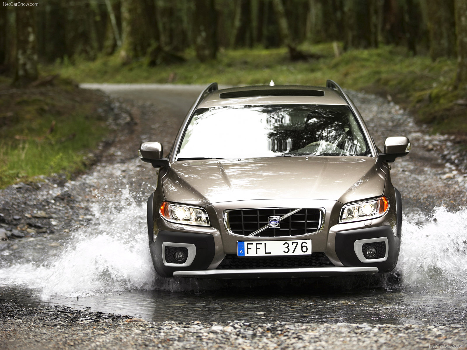 Скачать обои для рабочего стола Volvo-XC70 2008 по луже и фото