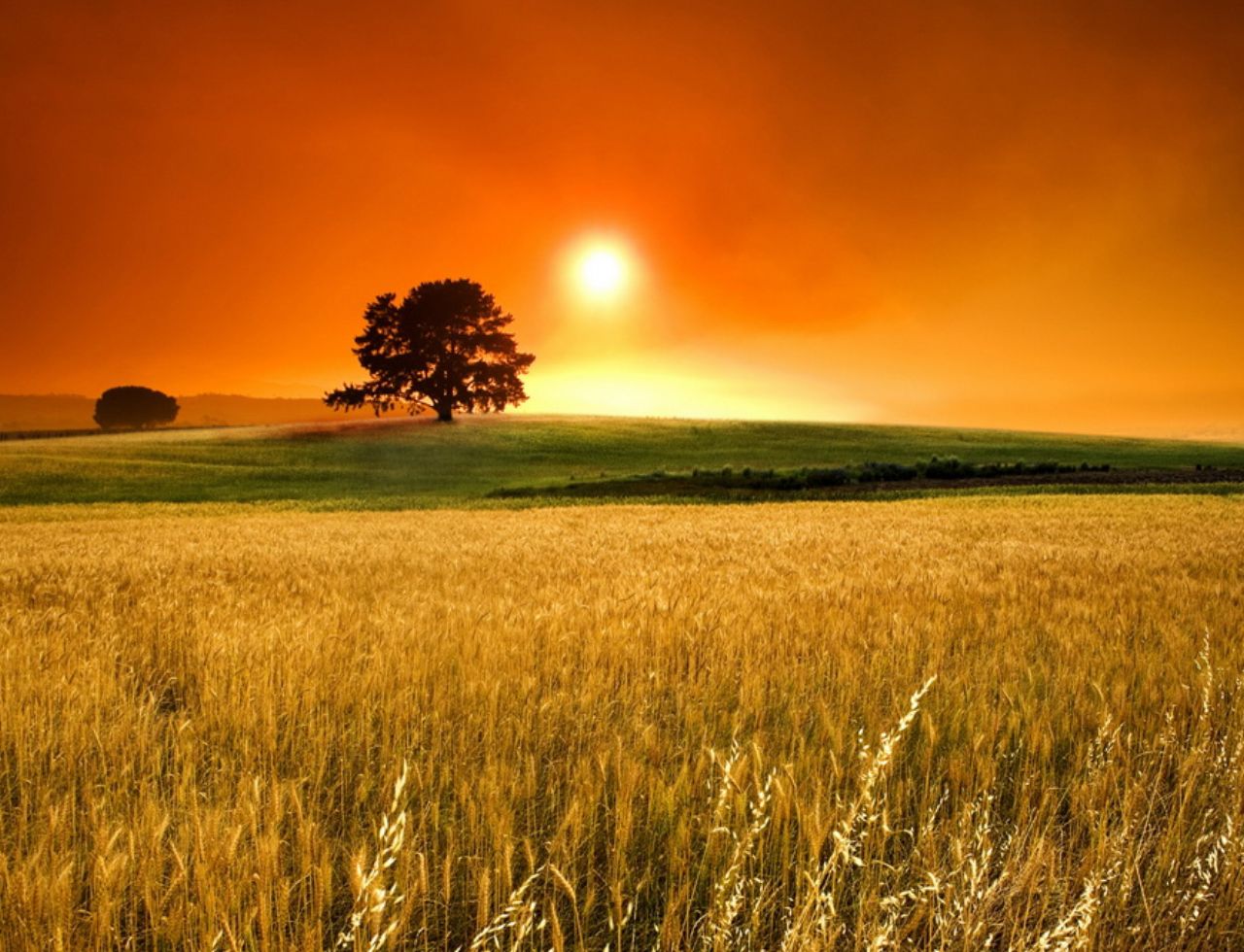 Скачать обои для рабочего стола Восход над пшеничном полем и фото