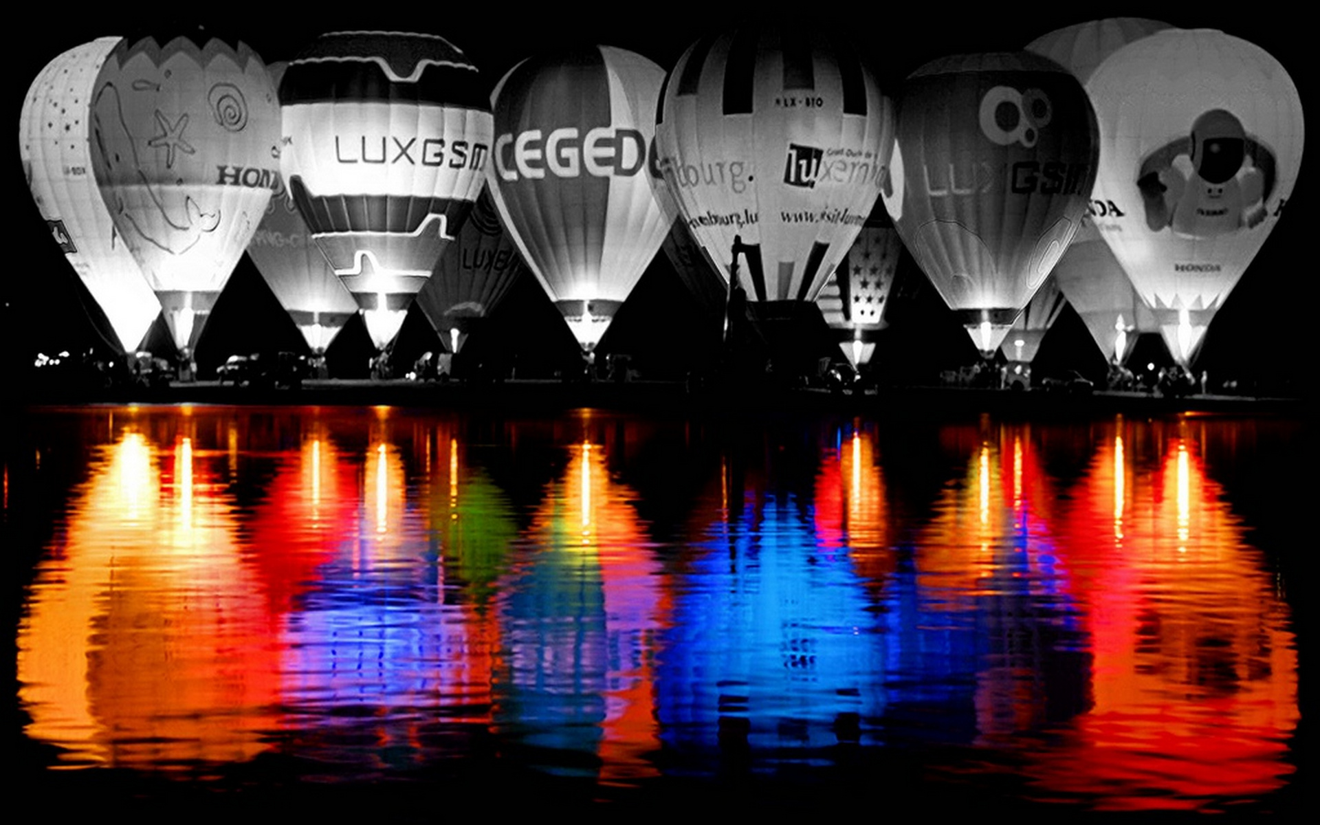 Скачать обои для рабочего стола Воздушные шары над озером и фото