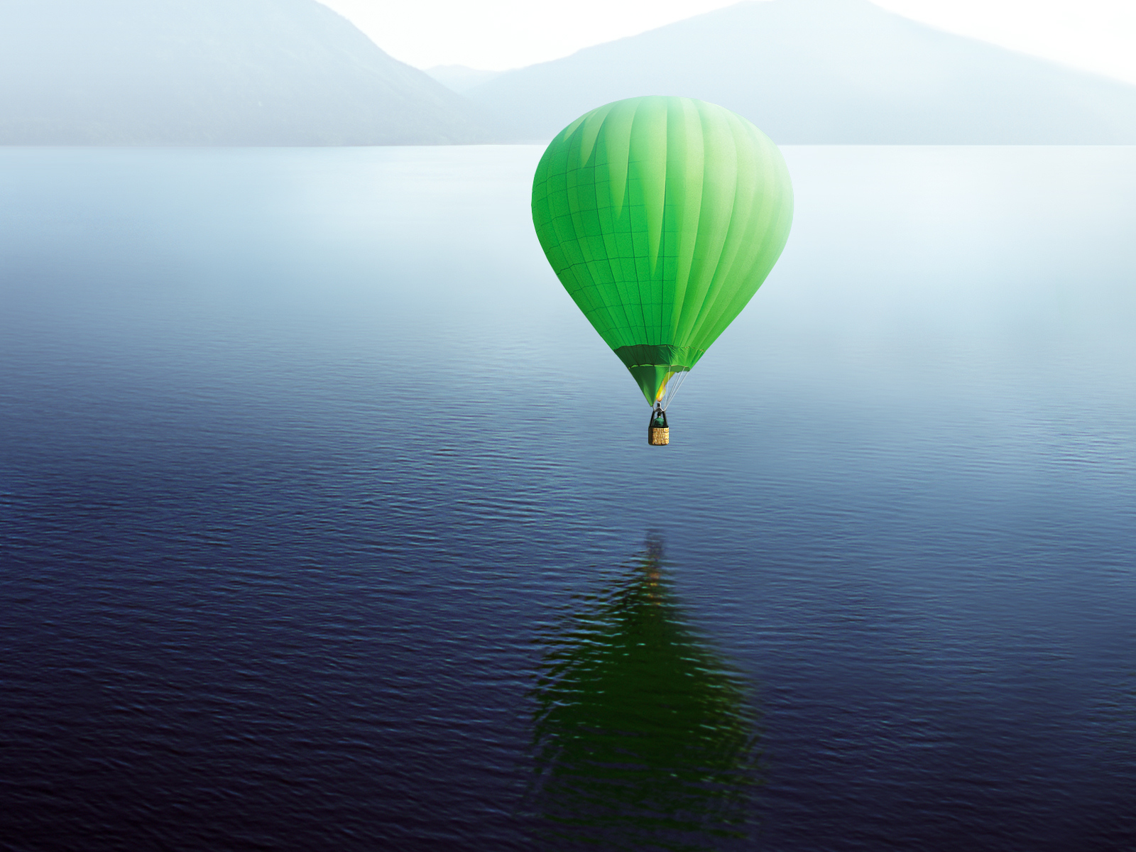 Скачать обои для рабочего стола Воздушный шар над водой и фото