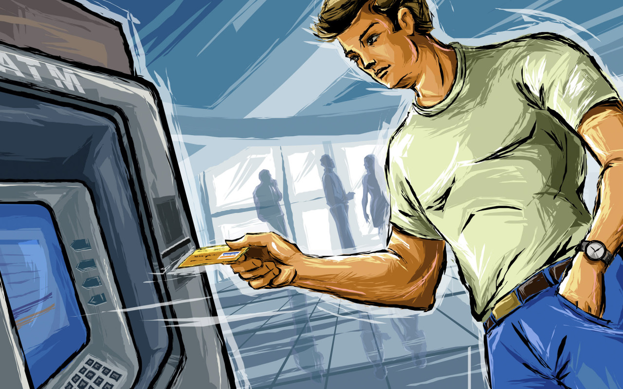 Скачать обои для рабочего стола Возле Банкомата и фото