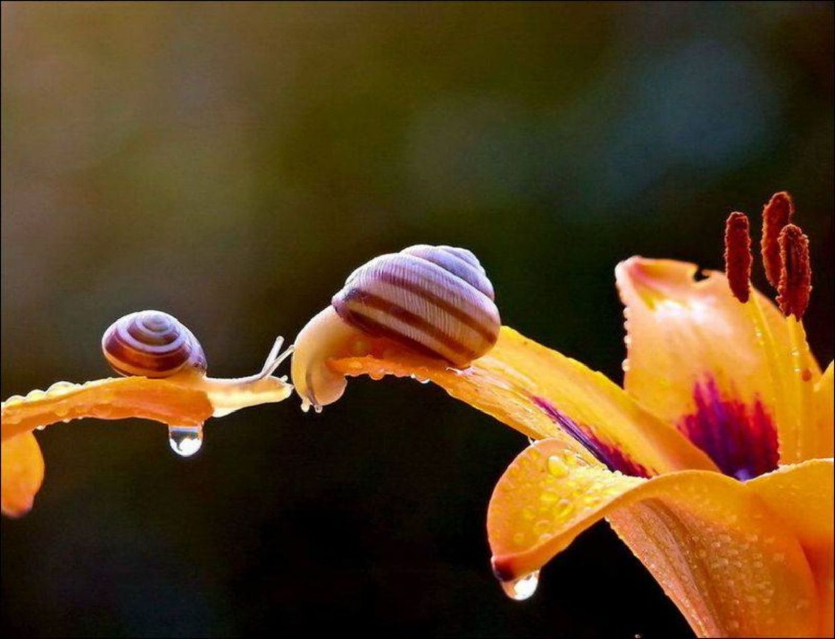Скачать обои для рабочего стола Встретились две улиточки и фото