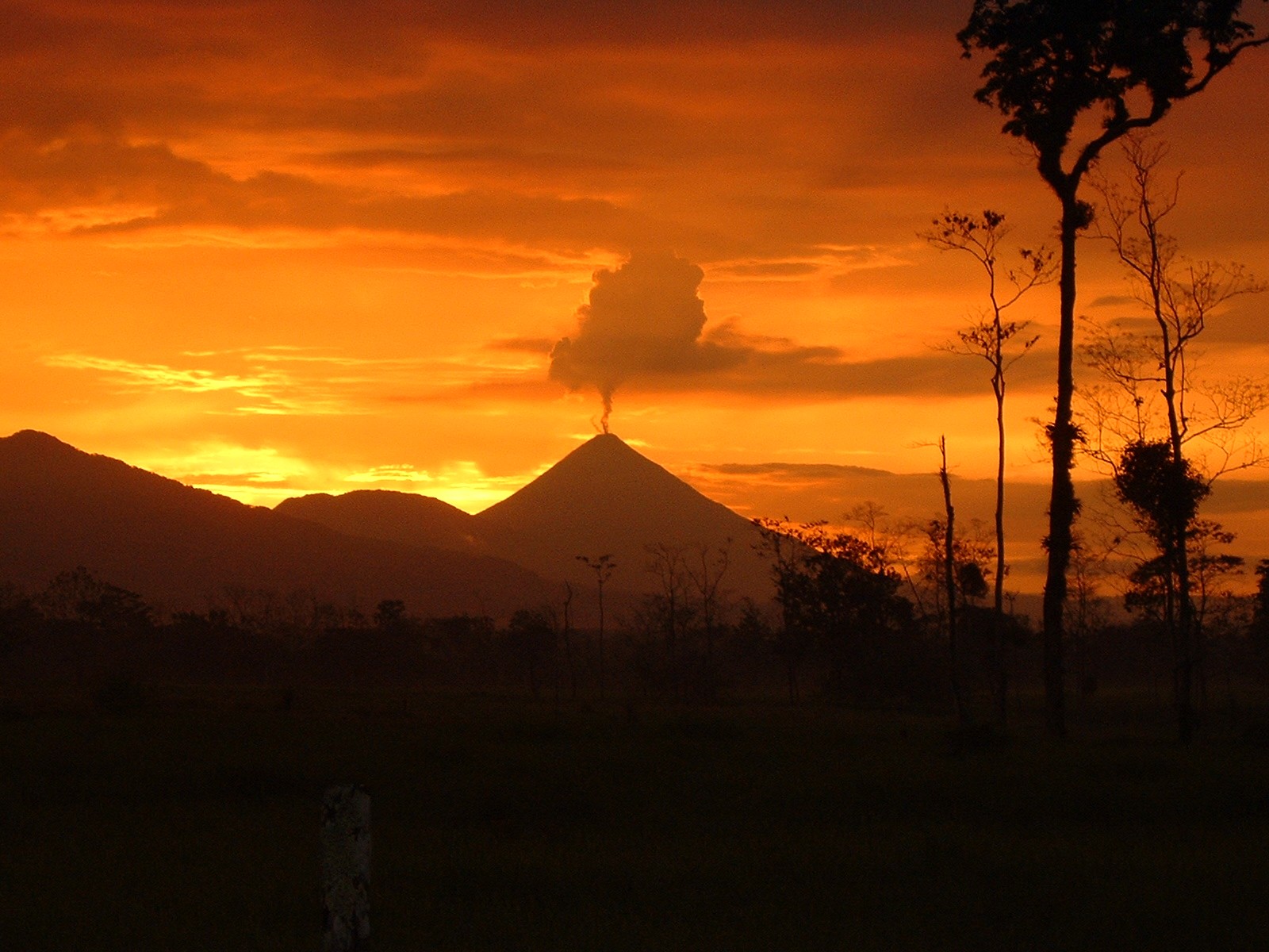 Скачать обои для рабочего стола Вулкан на закате и фото