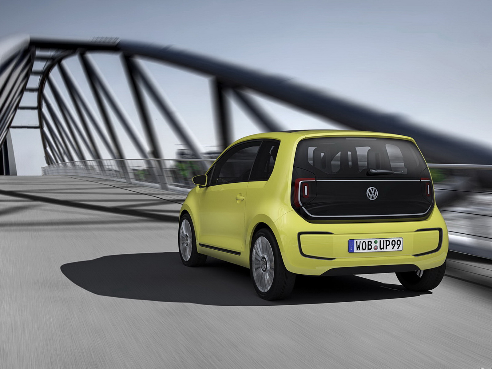 Скачать обои для рабочего стола VW E up вид авто со стороны объектива под углом и фото