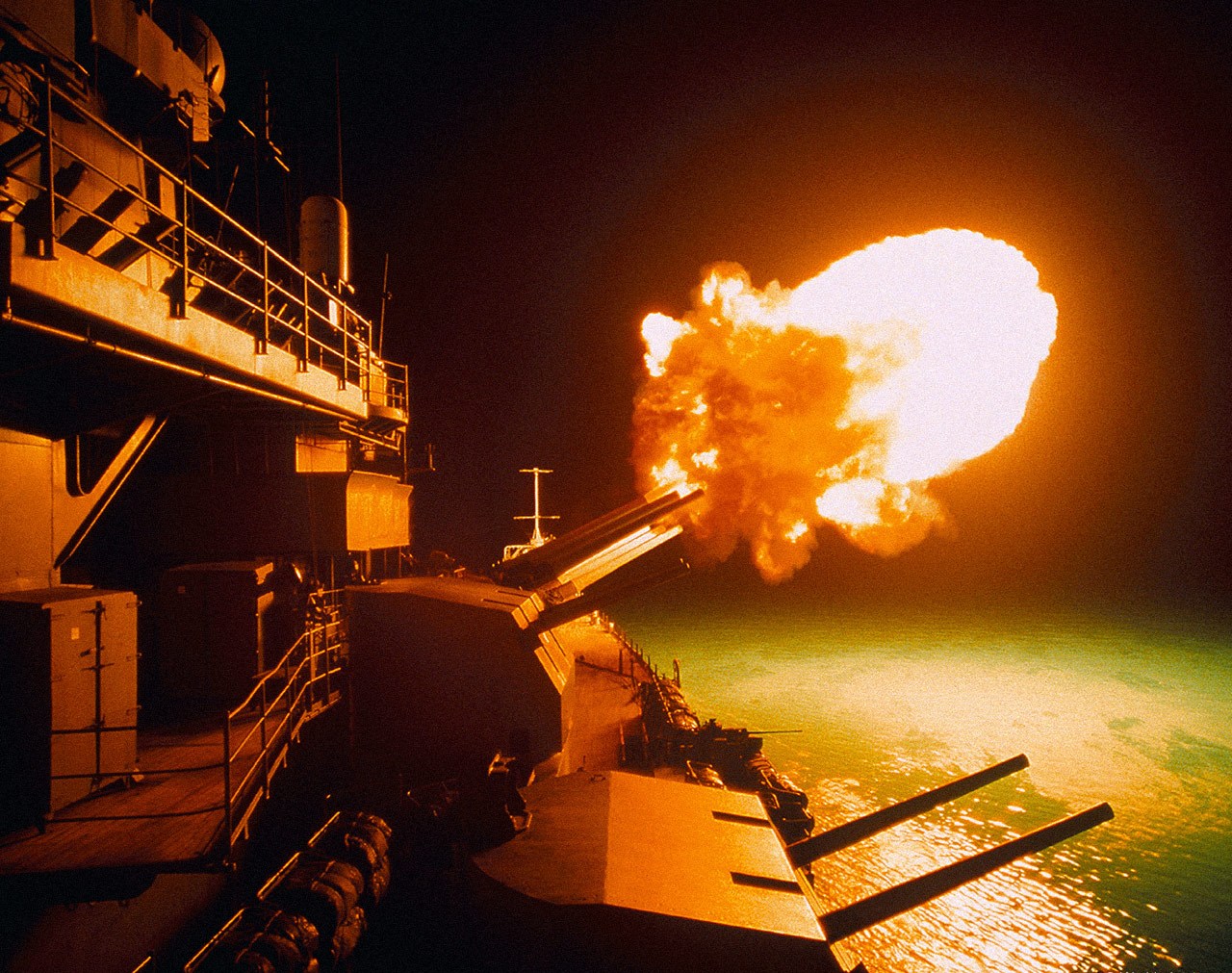 Скачать обои для рабочего стола Выстрел из корабельных орудий и фото