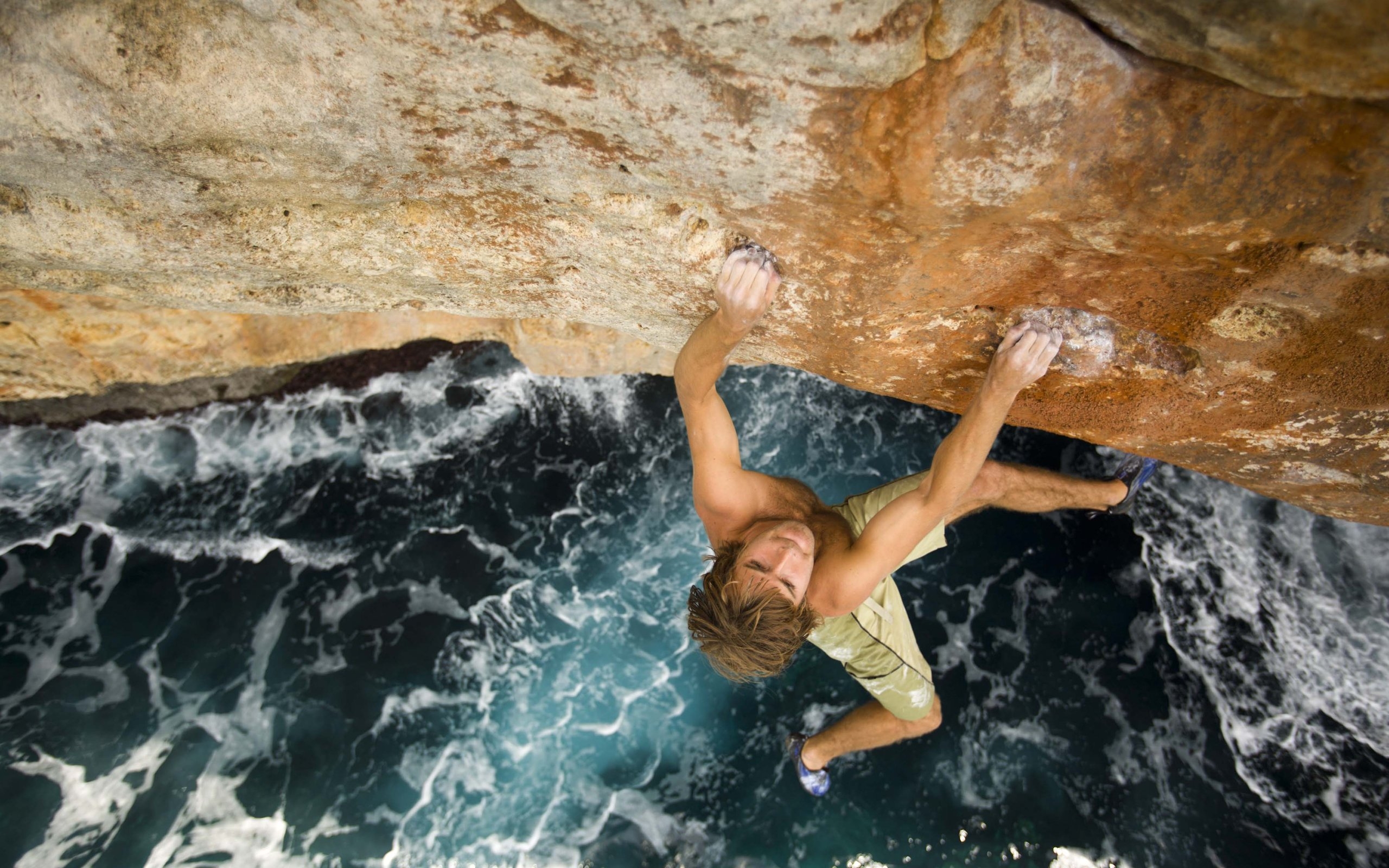 Скачать обои для рабочего стола Взбираясь по отвесной скале и фото
