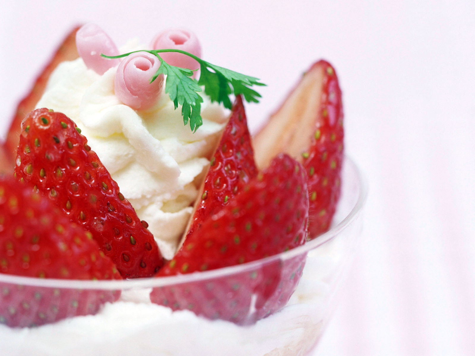 Скачать обои для рабочего стола Взбитые сливки с клубникой и фото