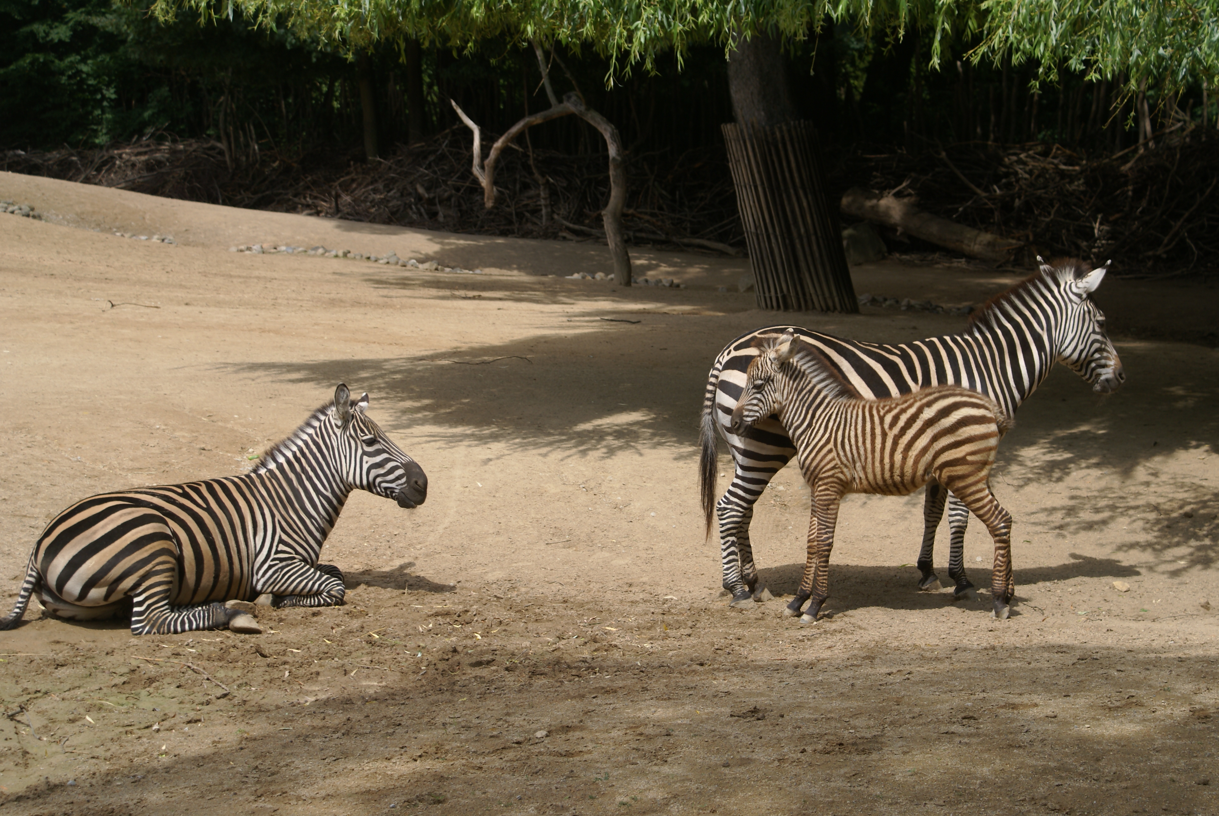 Скачать обои для рабочего стола Взрослые зебры присматривают за малышом и фото
