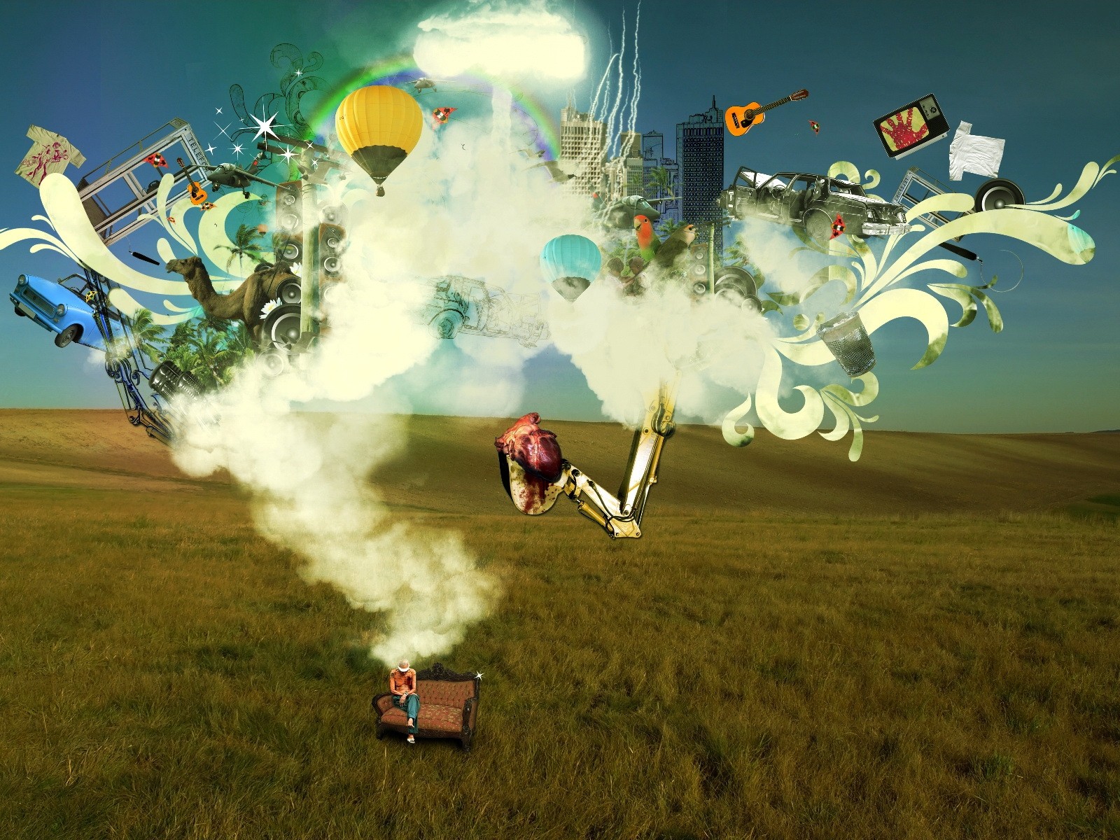 Скачать обои для рабочего стола Взрыв мозгов среди поля на диванe и фото