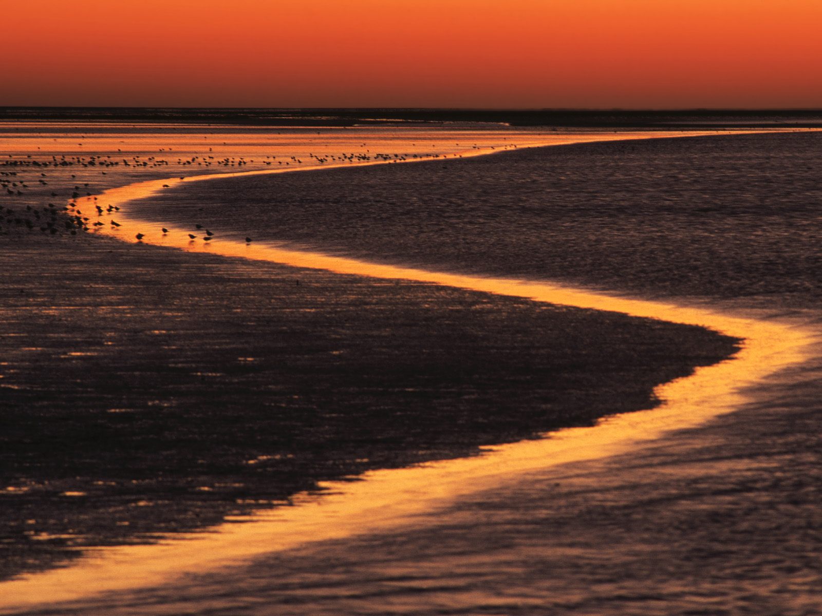 Похожие обои на Wadden Island Estuary at Sunset, The Netherlands: