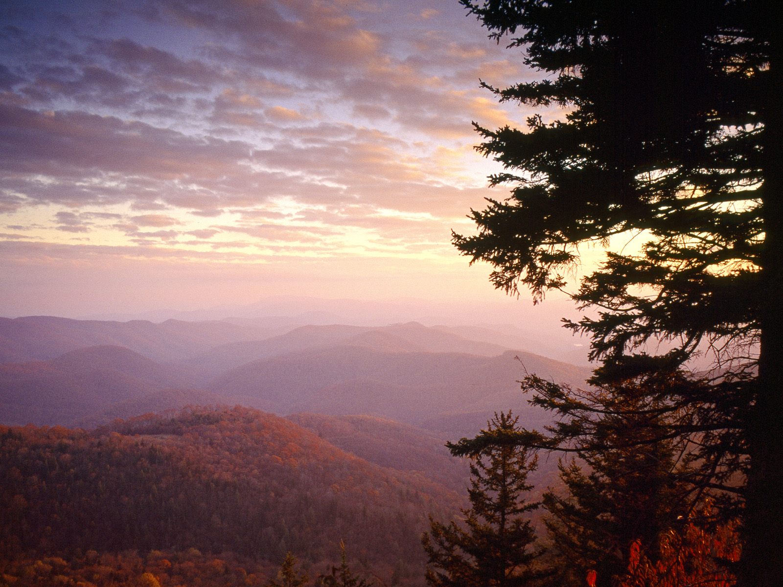 Скачать обои для рабочего стола Wolf Mountain Overlook at Sunset From the Blue Ridge Parkway, North Carolina и фото