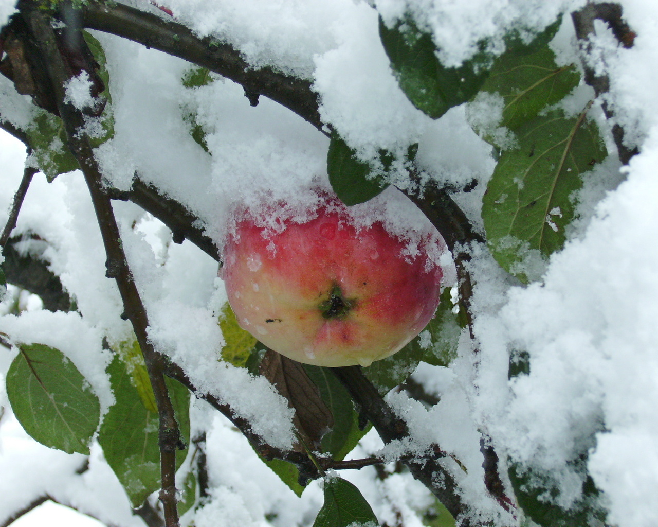 Скачать обои для рабочего стола Яблоко под снегом и фото