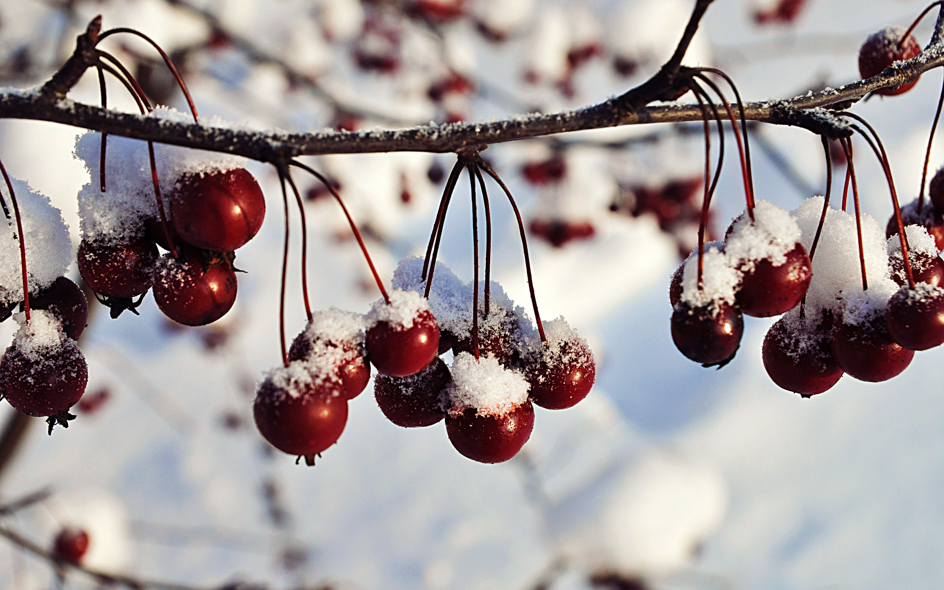 Скачать обои для рабочего стола Ягоды в снегу и фото