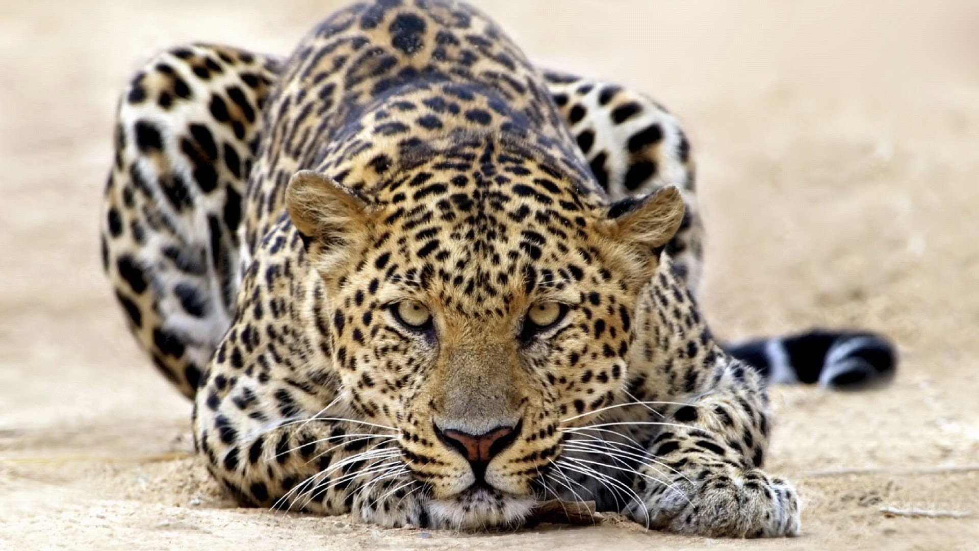 Скачать обои для рабочего стола Ягуар на песке и фото
