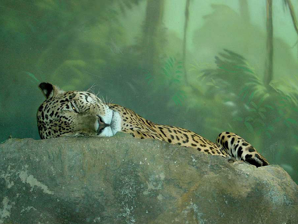 Скачать обои для рабочего стола Ягуар отдыхает на камне и фото