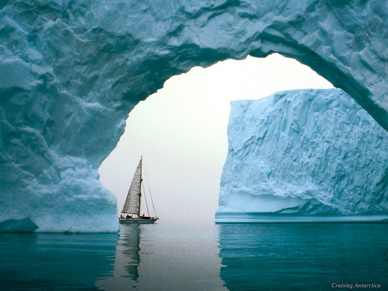 Скачать обои для рабочего стола Яхта между айсбергами и фото