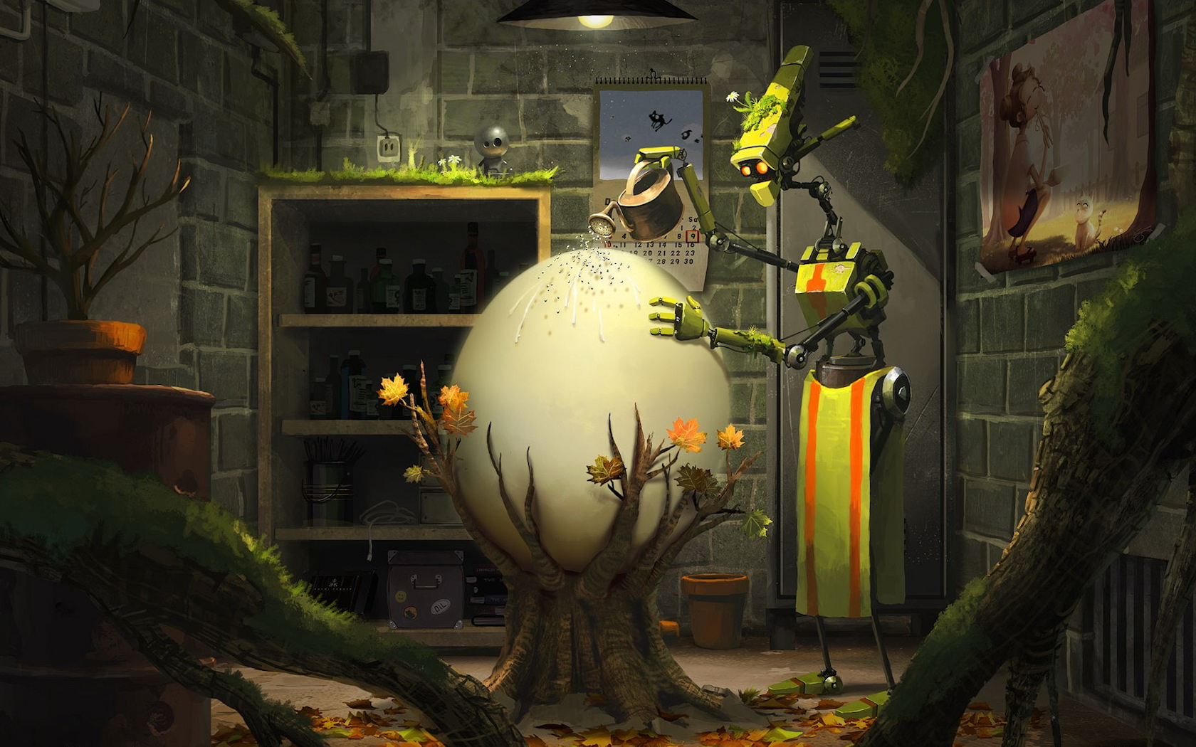 Скачать обои для рабочего стола Яйцо в урбанистическом мире и фото