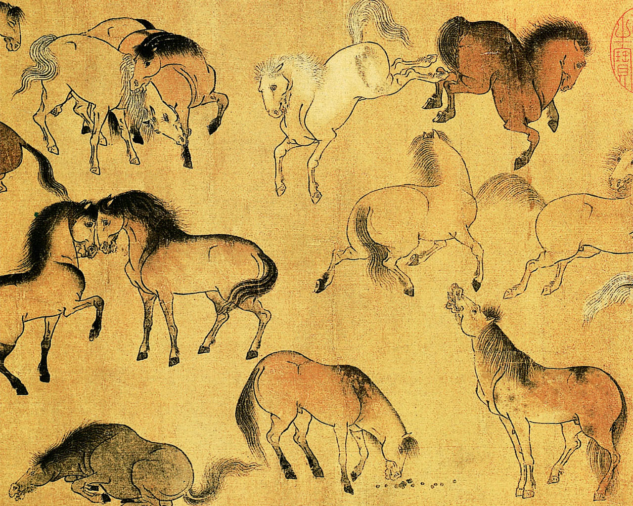 Скачать обои для рабочего стола Японская живопись лошади и фото