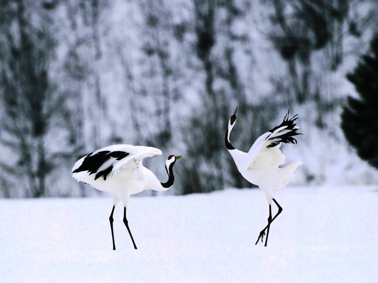 Скачать обои для рабочего стола Японский журавль в снегу и фото