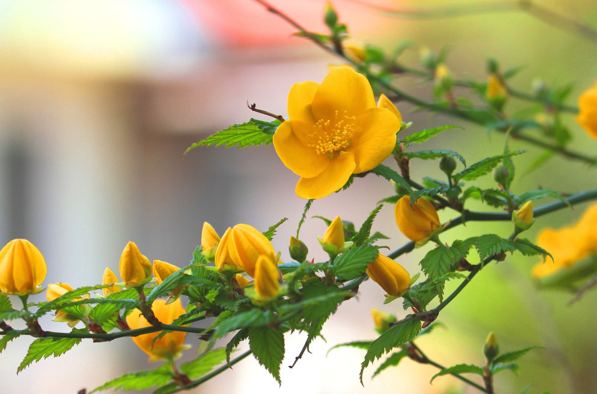 Скачать обои для рабочего стола Яркие желтые цветы на дереве и фото