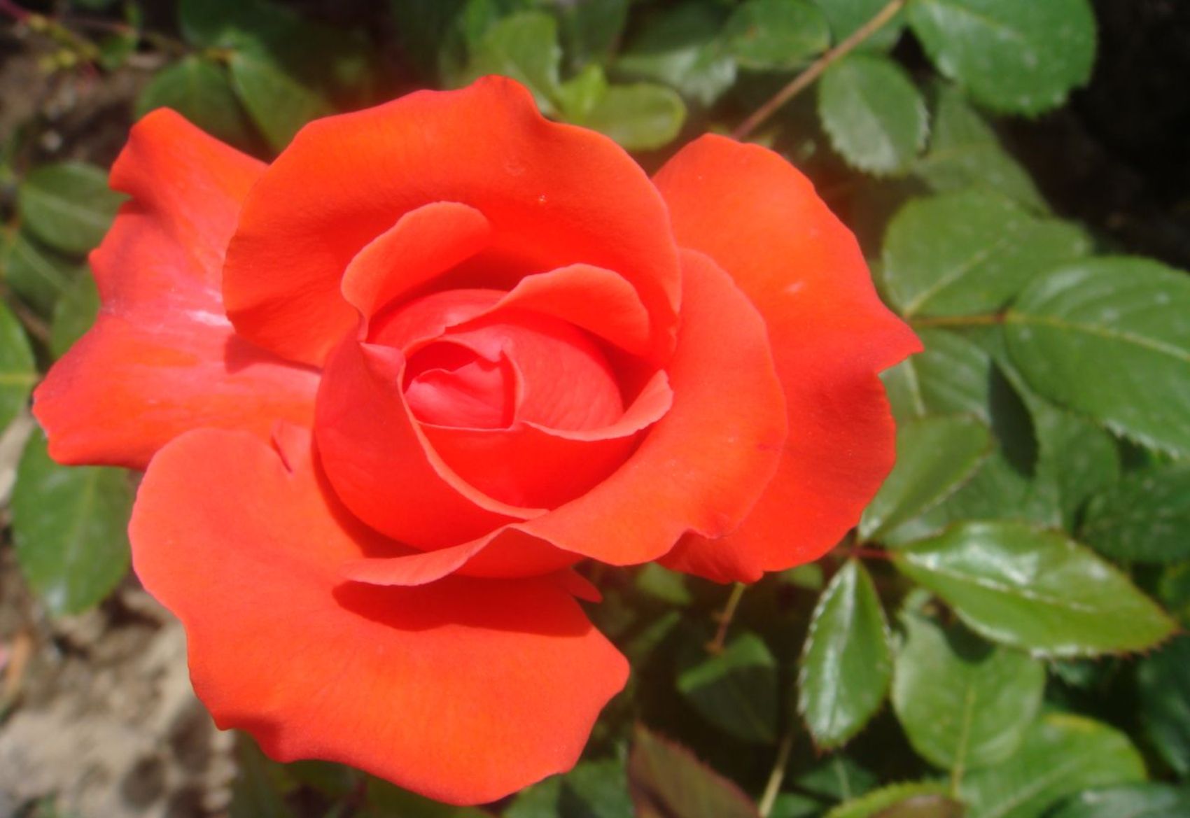 Скачать обои для рабочего стола Ярко-красная роза на солнце и фото