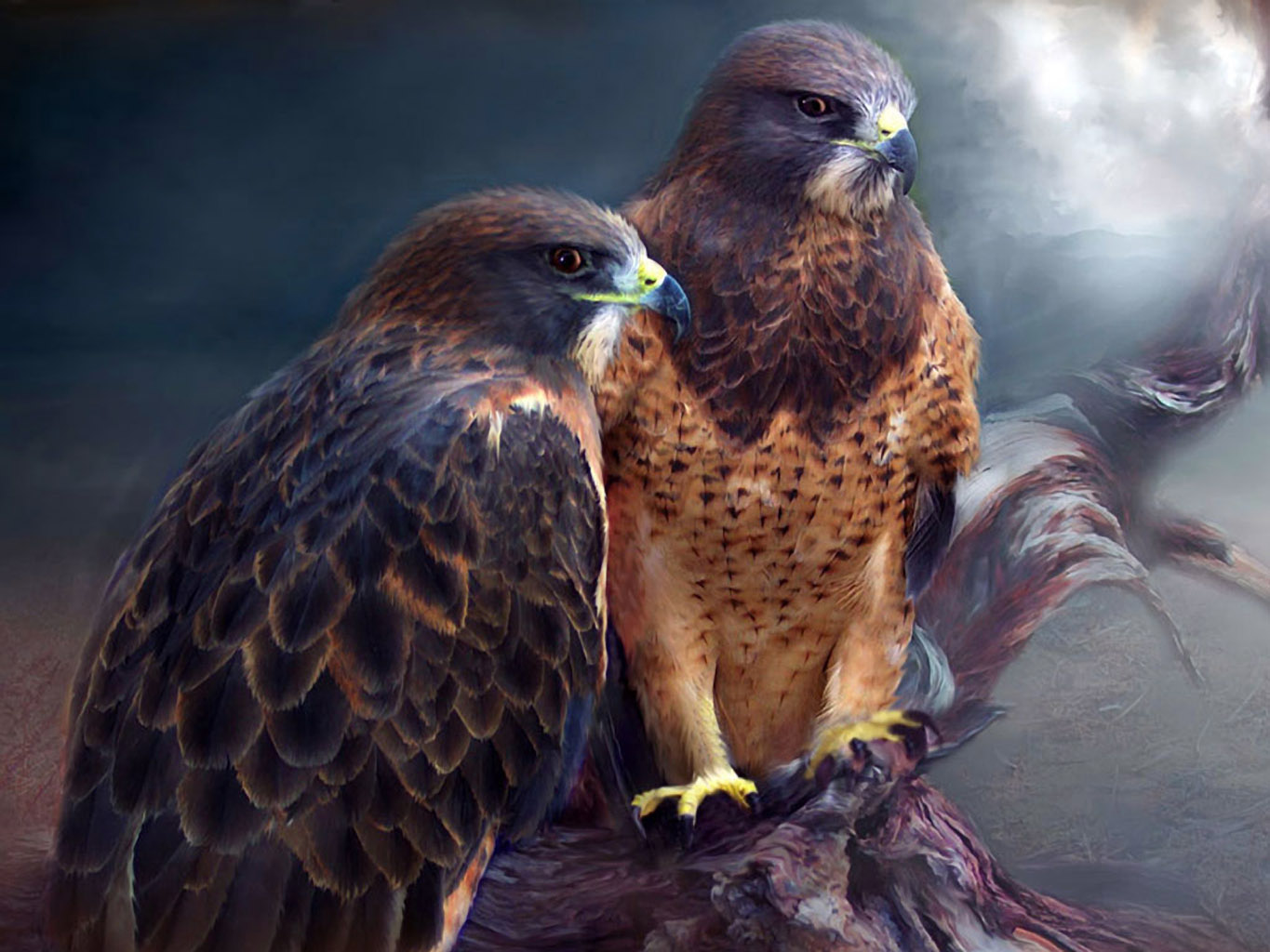 Скачать обои для рабочего стола Ястребы на дереве и фото