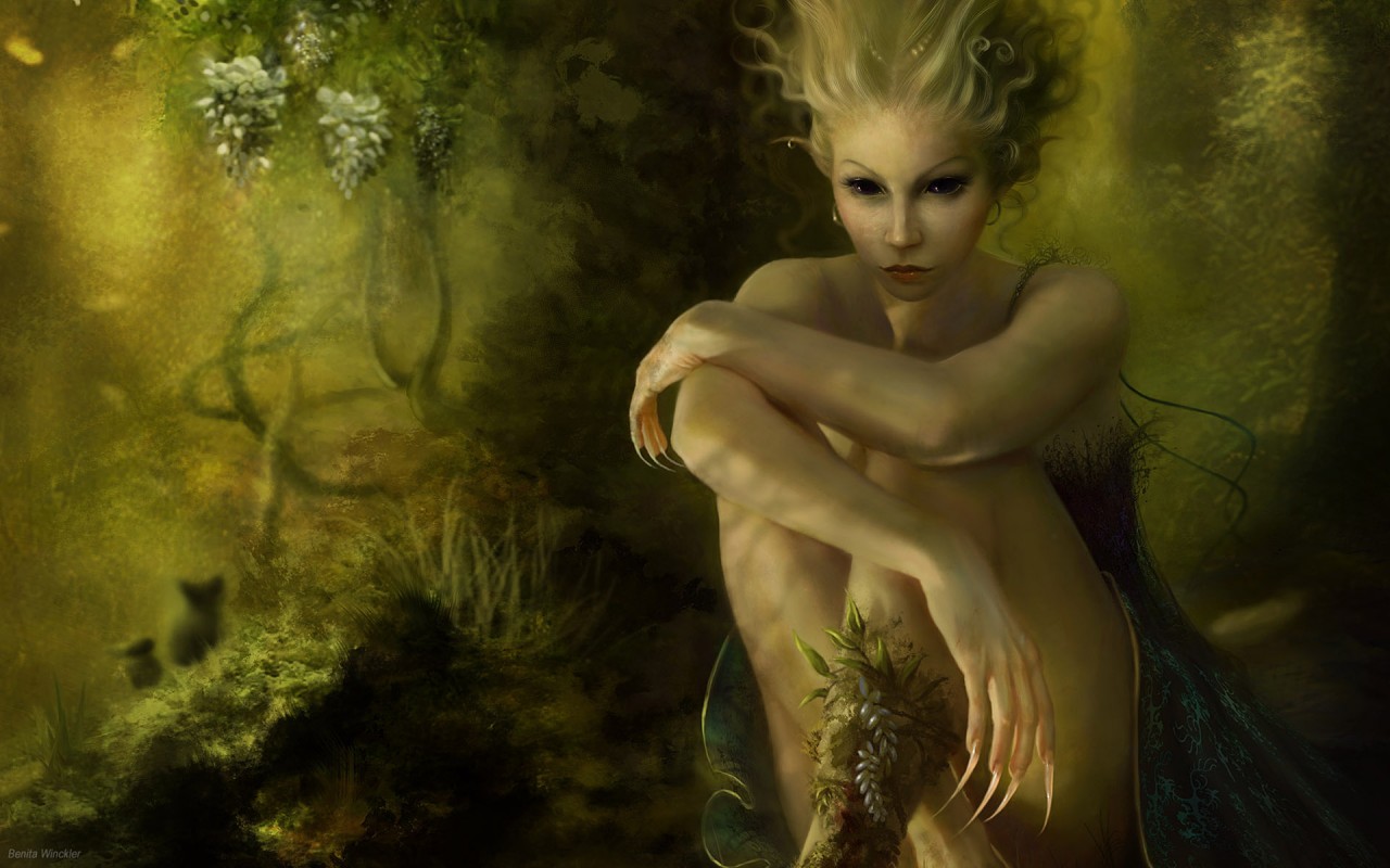 Скачать обои для рабочего стола Задумчивая фея и фото
