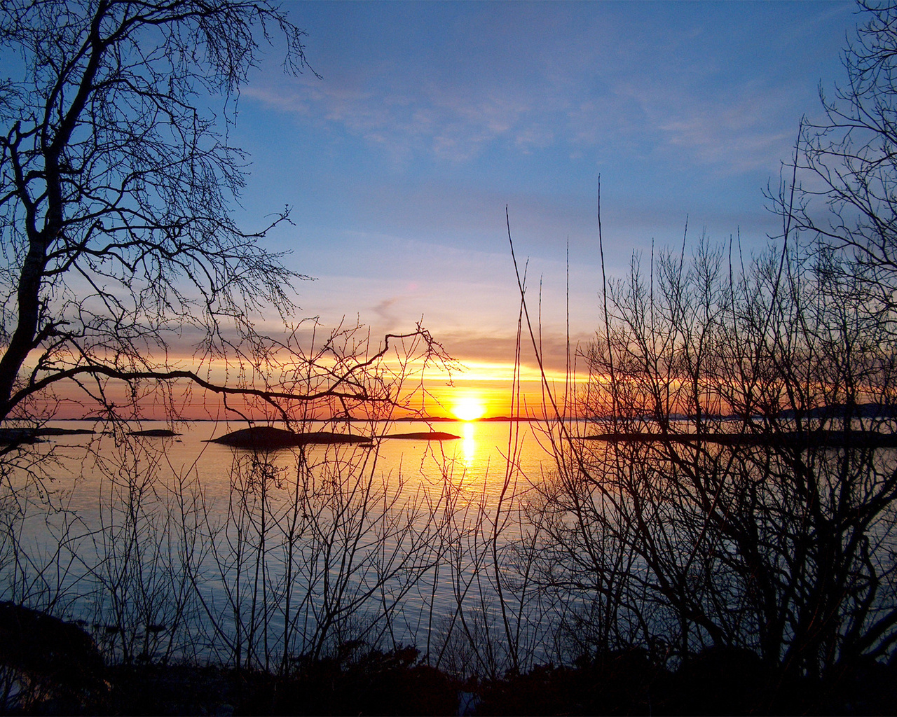 Скачать обои для рабочего стола Закат и голые деревья и фото