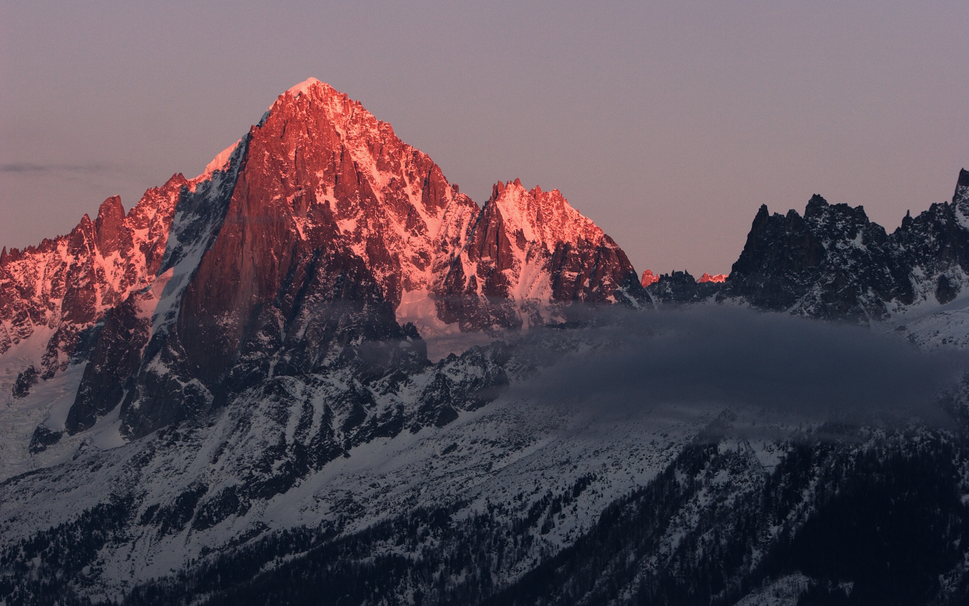 Скачать обои для рабочего стола Закат коснулся вершины горы и фото