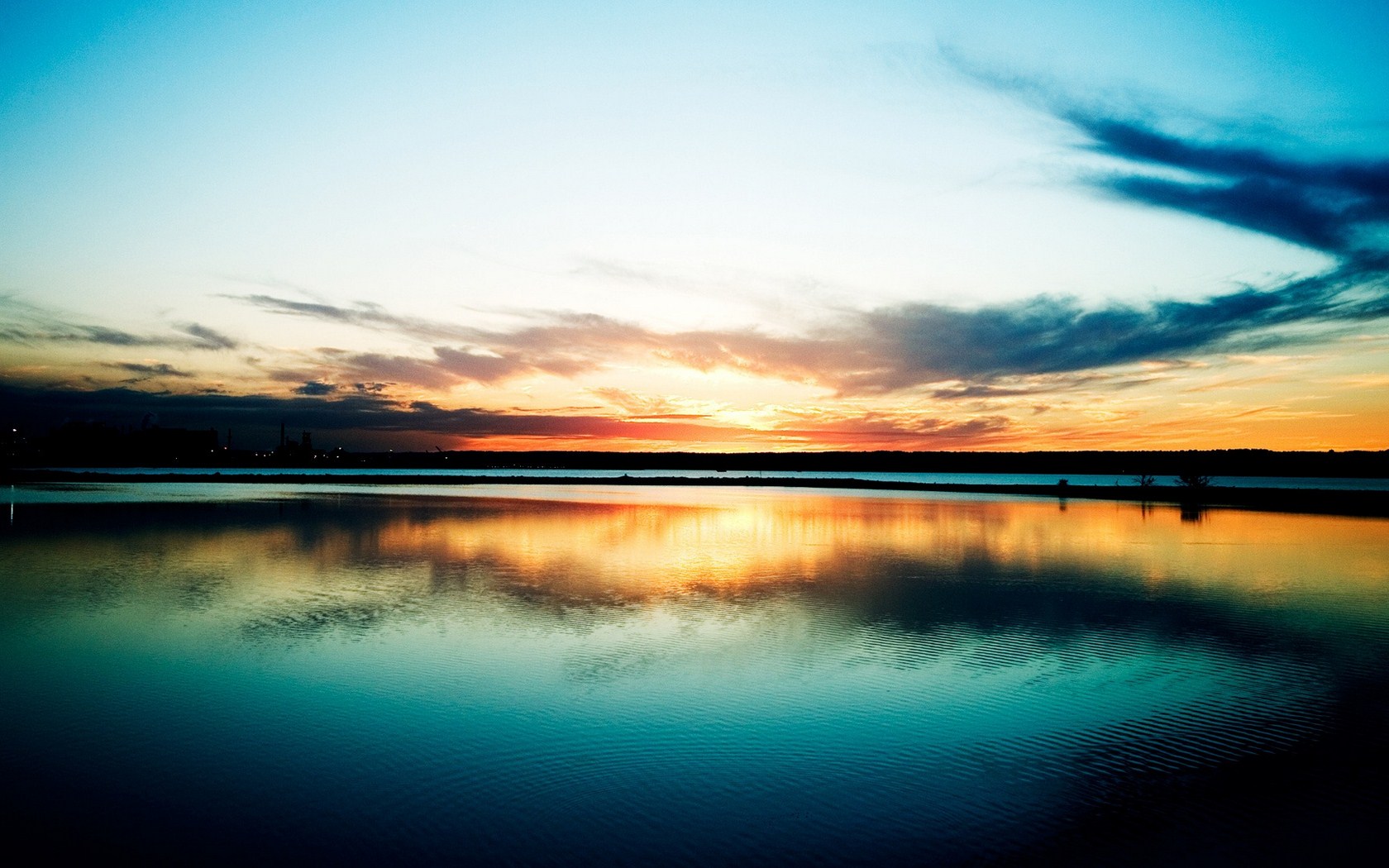 Скачать обои для рабочего стола Закат на берегу реки и фото